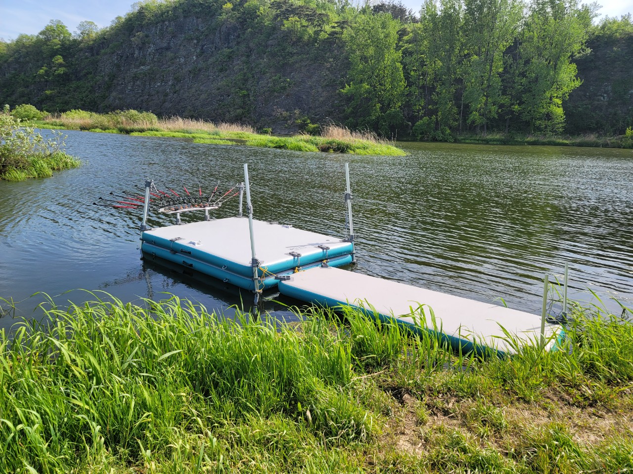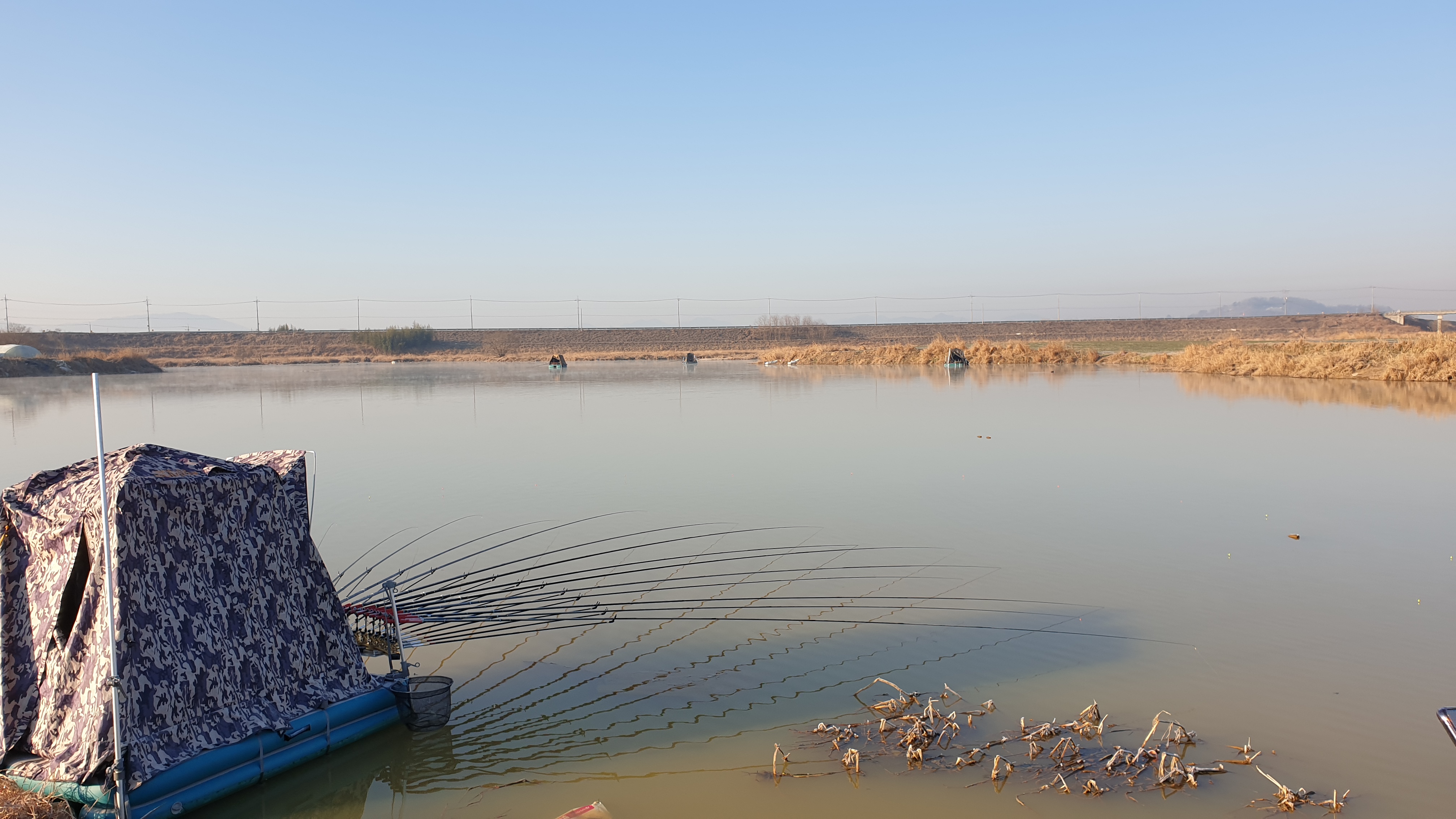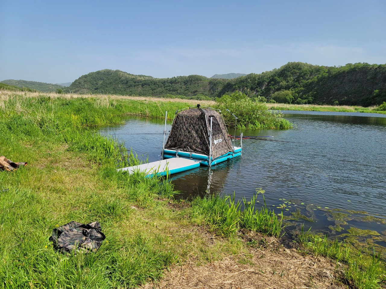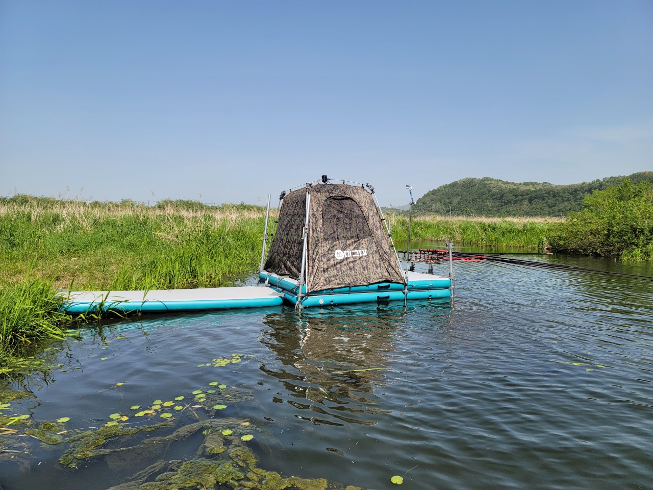 마그마 스카이 수상좌대에 다리를 설치된 모습입니다