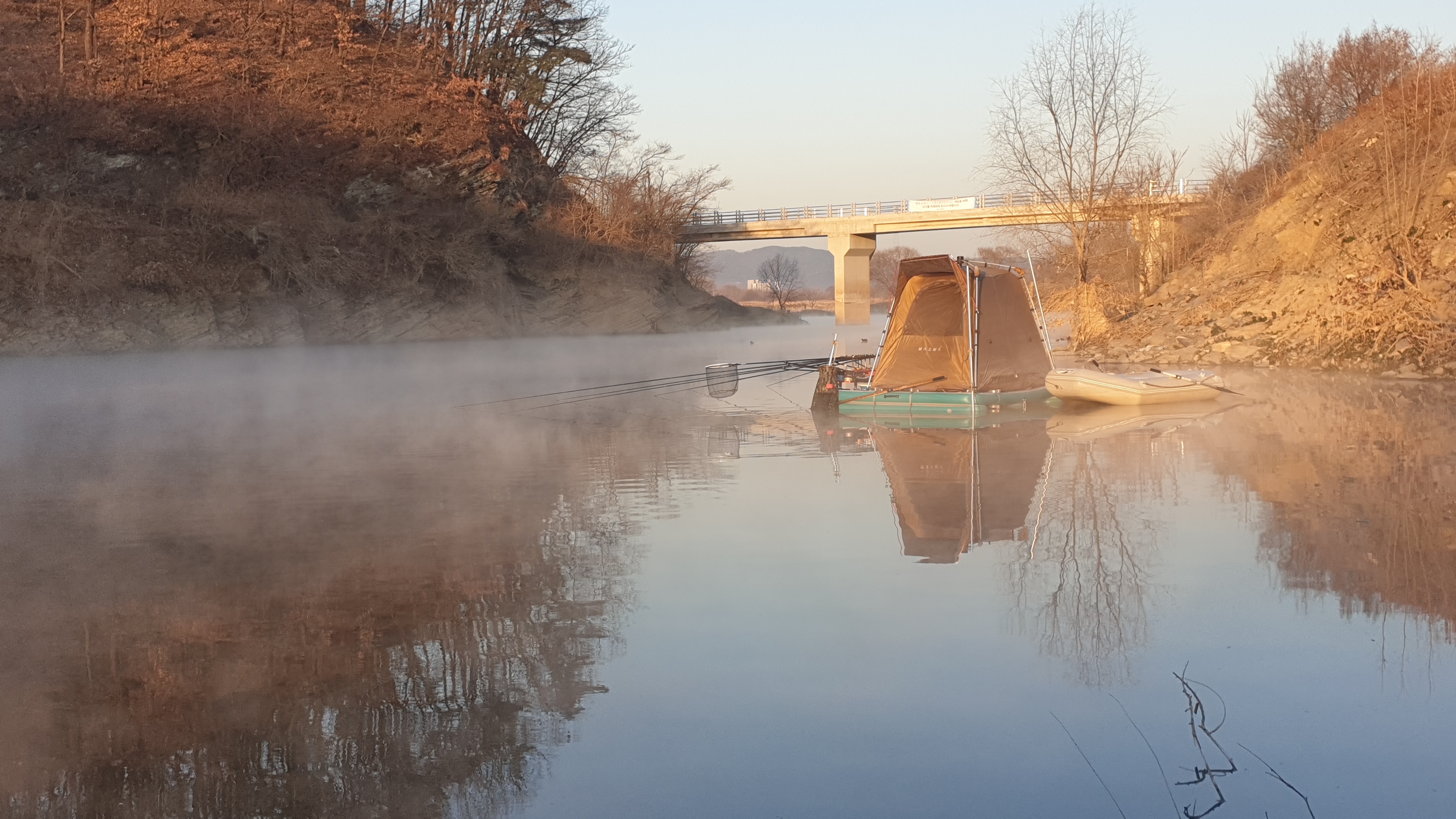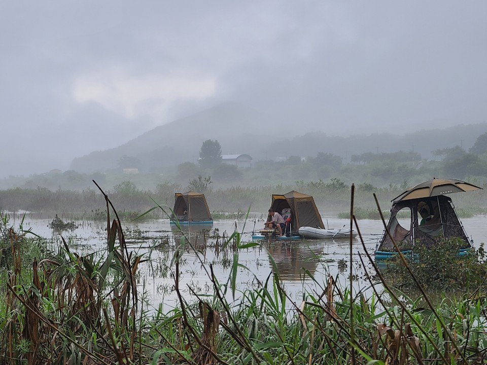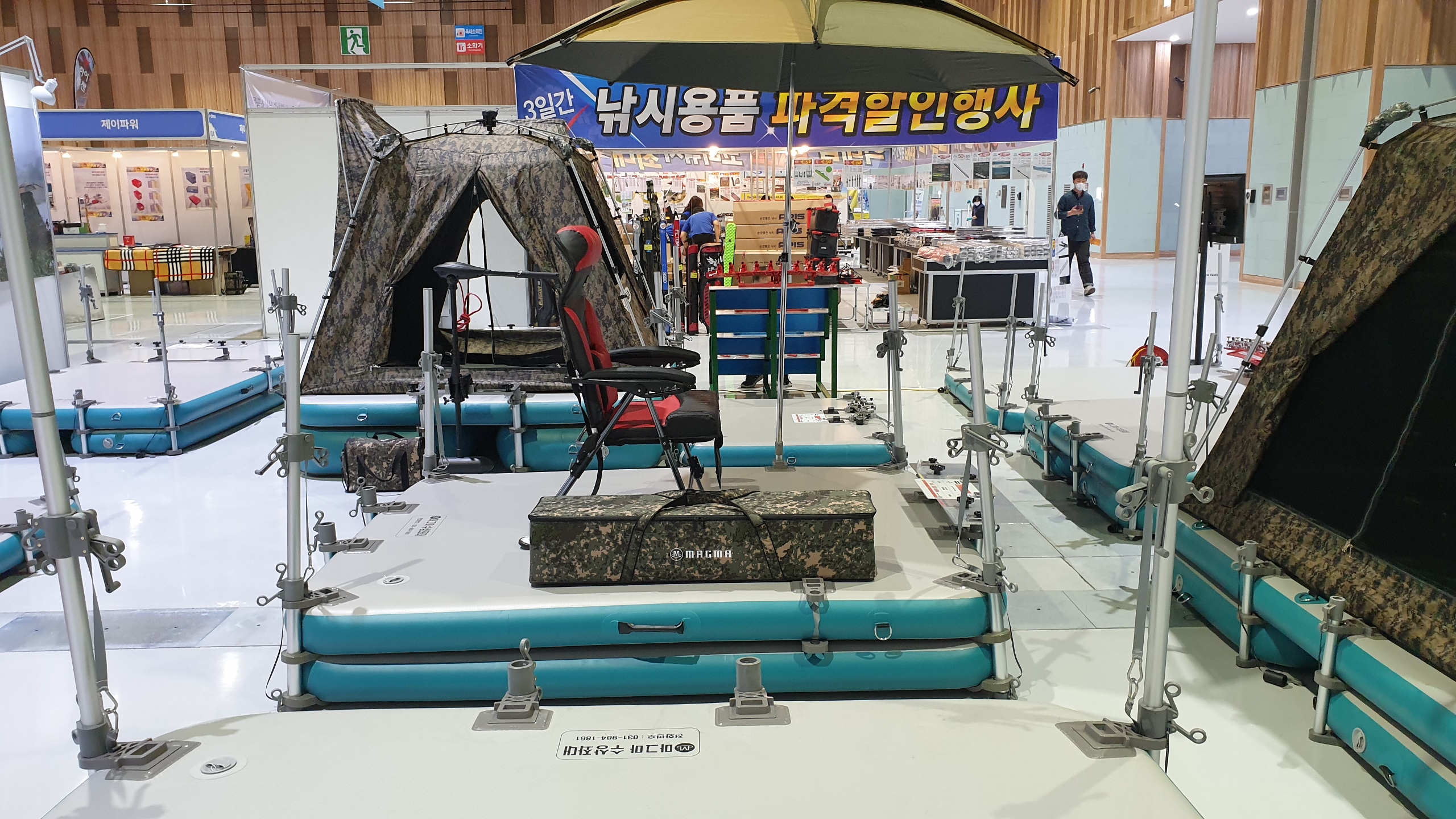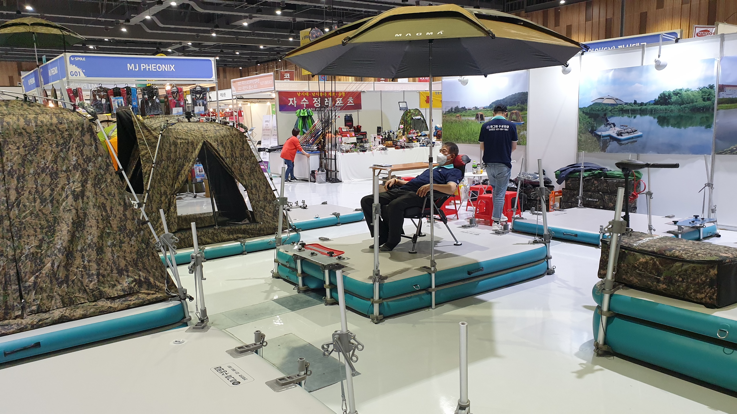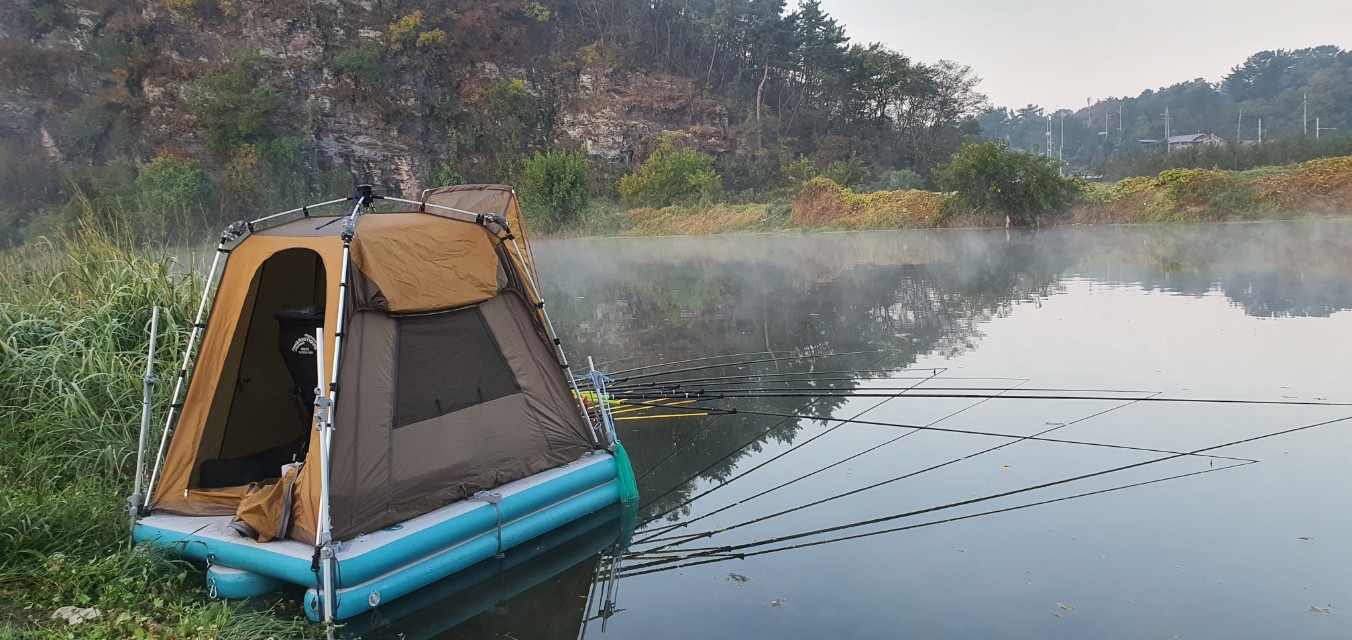 그냥 마그마좌대 위에서 편안하게 폴대만 풀러서 땅에 꽂아주면 됩니다