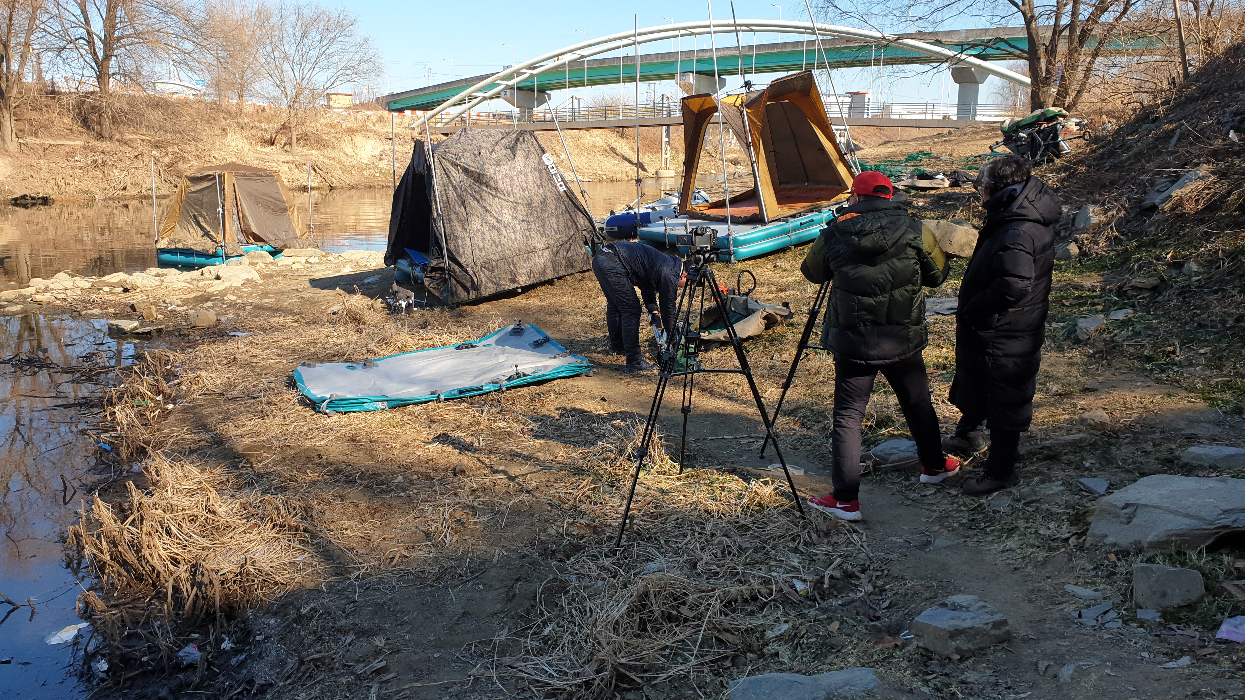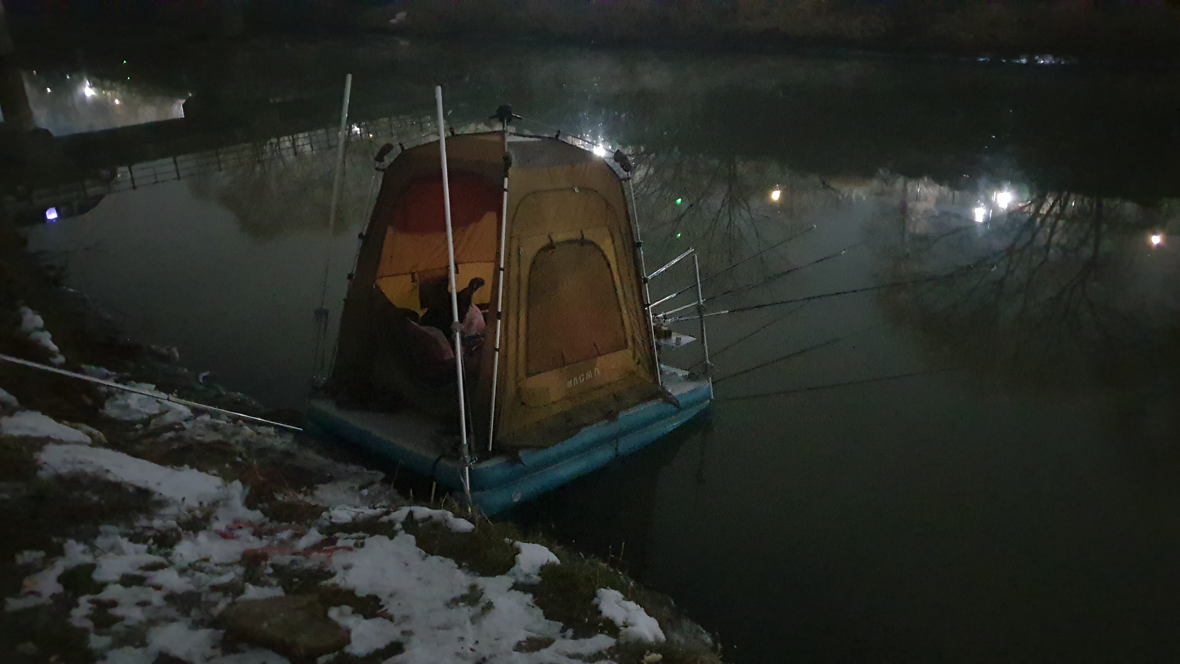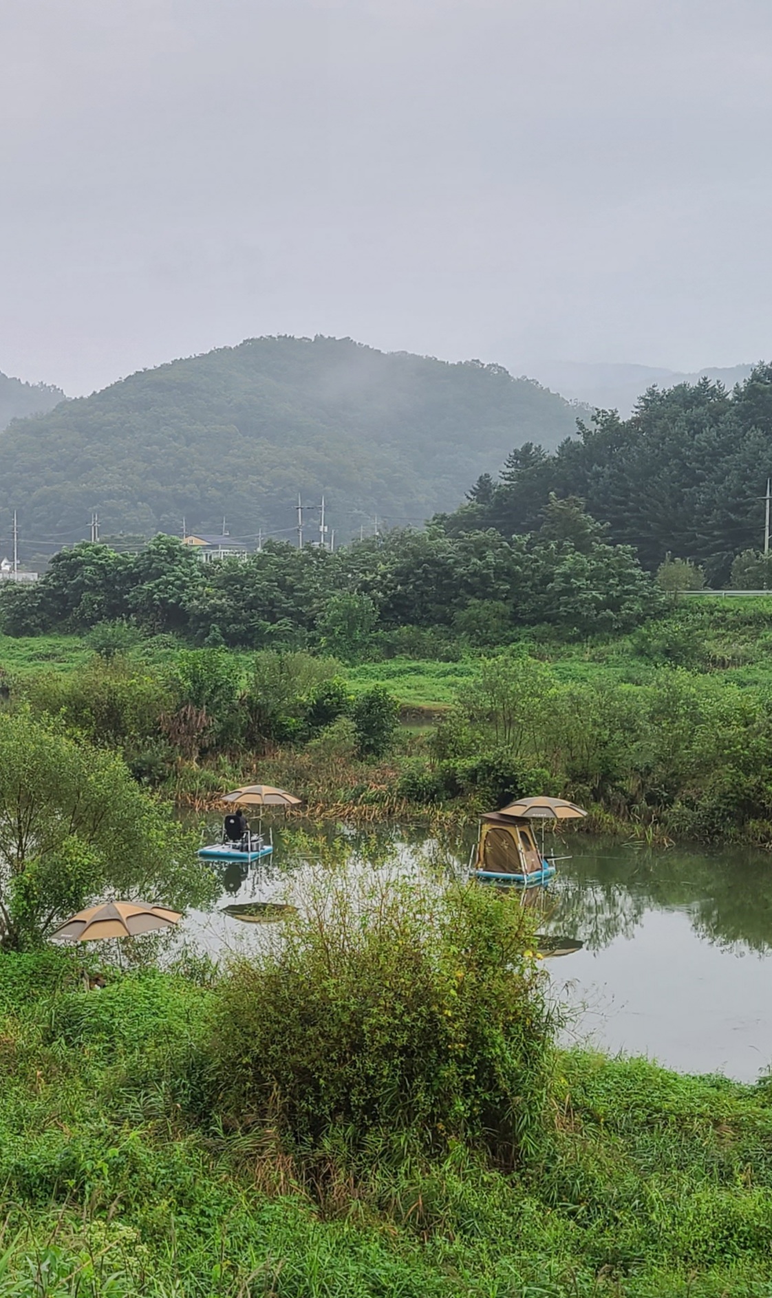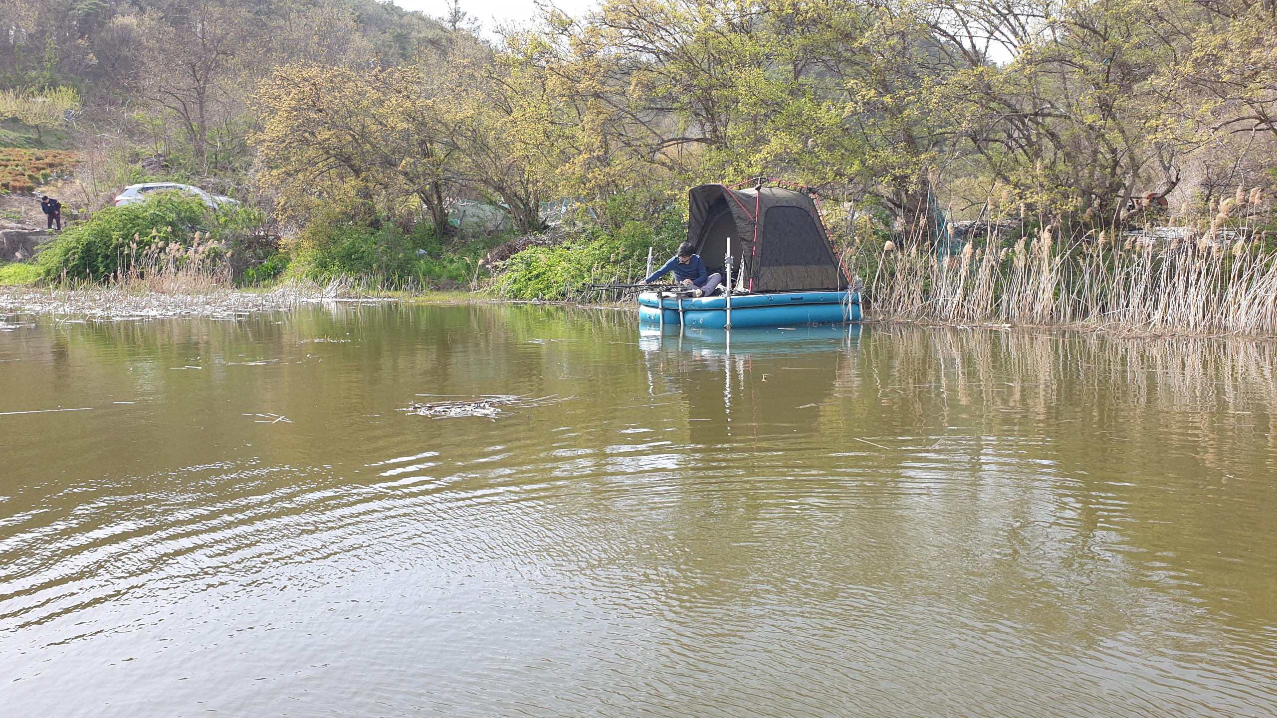 그냥 마그마좌대 위에서 편안하게 폴대만 풀러서 땅에 꽂아주면 됩니다